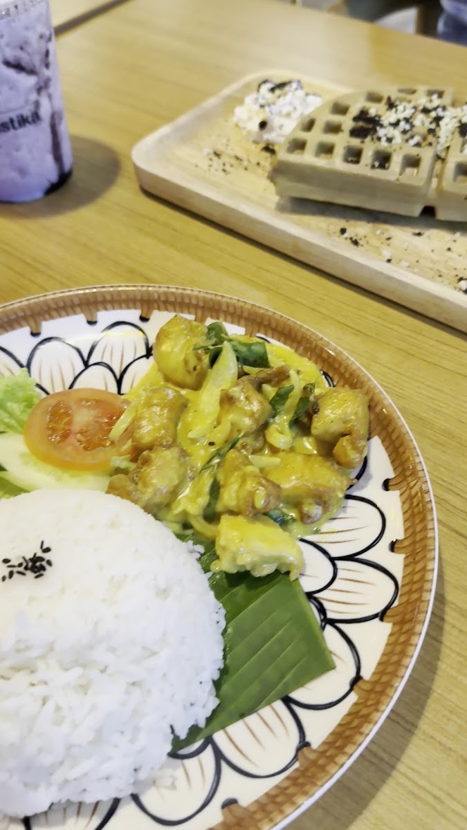 For food lovers, the cafe offers a balance between lighter fare and more substantial meals — the Kam Heong Chicken with Rice and the Nasi Lemak Berempah come highly recommended by regulars. Desserts such as waffles served with vanilla ice cream encourage sharing, ideal for ending a meal with friends or family. The menu also includes interesting iced and blended drinks, from popcorn caramel to fruity frappes, fitting for a casual and cooling refreshment during midday visits.